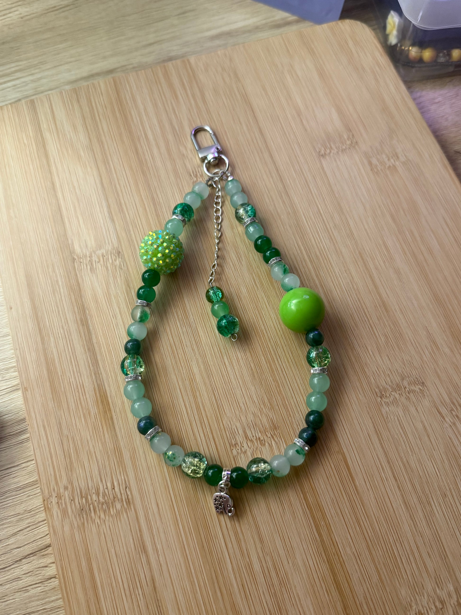 Le bijou de téléphone Eleana associe originalité et symbolisme. Ses perles vertes aux nuances variées rappellent la vitalité de la nature, tandis que ses perles fantaisie apportent une touche unique. Le pendentif éléphant argenté, symbole de chance et de protection, en fait un accessoire à la fois esthétique et porteur de sens.