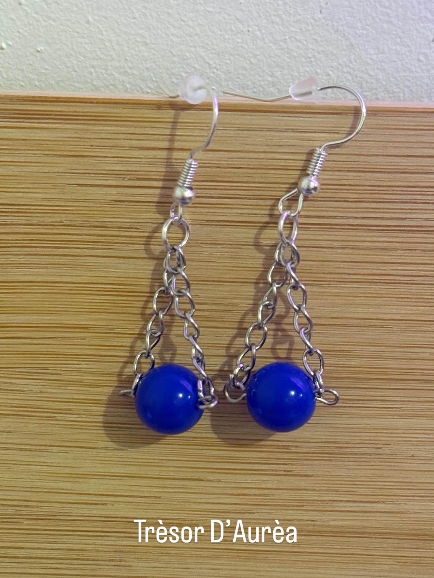 Ces boucles d’oreilles élégantes allient modernité et finesse. Composées de chaînes argentées délicatement reliées à une perle bleue intense, elles apportent une touche de caractère et de raffinement à vos tenues. Légères et tendance, elles se portent aussi bien au quotidien que pour des occasions spéciales.