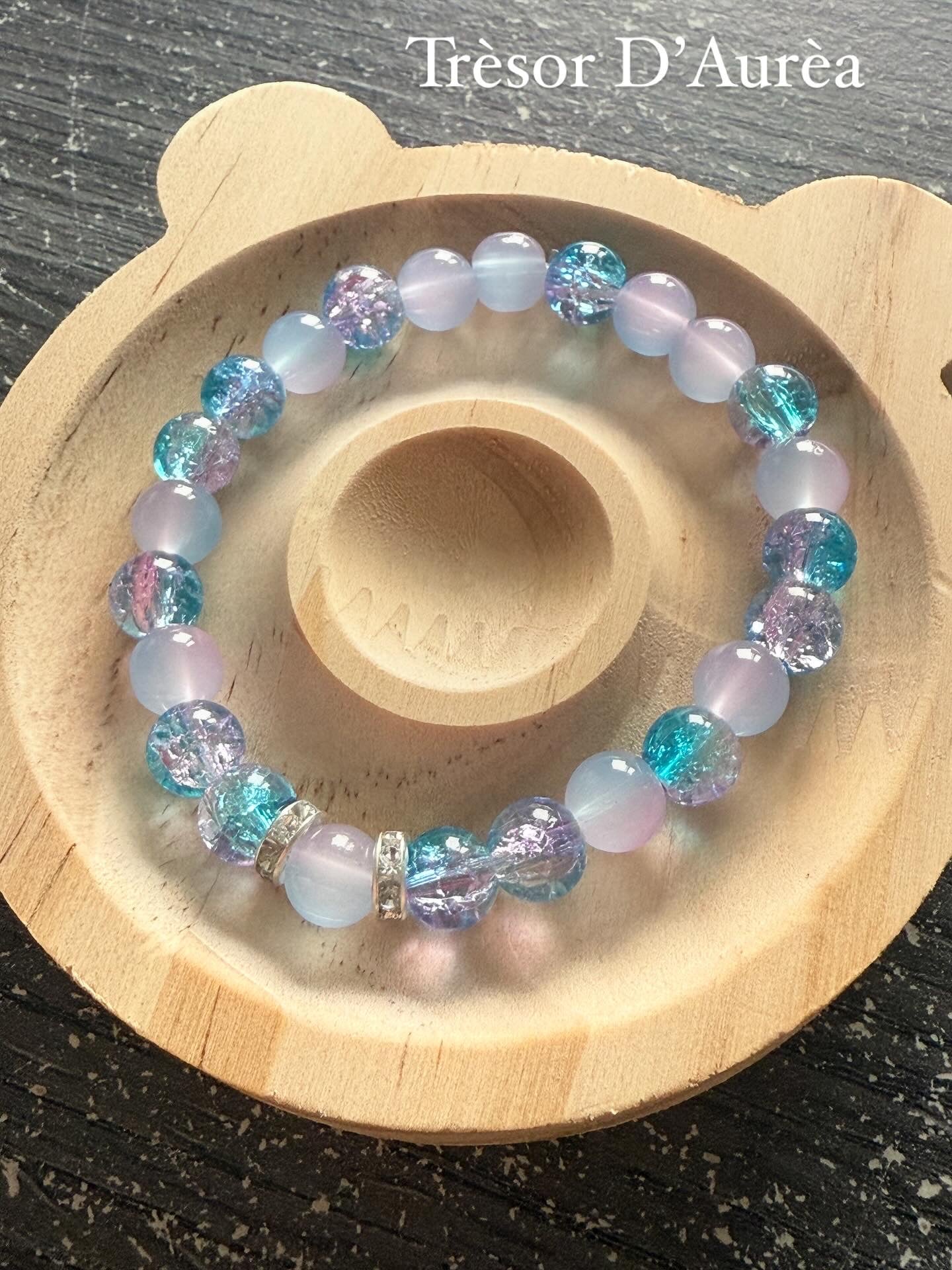 ✨ Bracelet perles lilas & bleu aqua avec reflets scintillants ✨