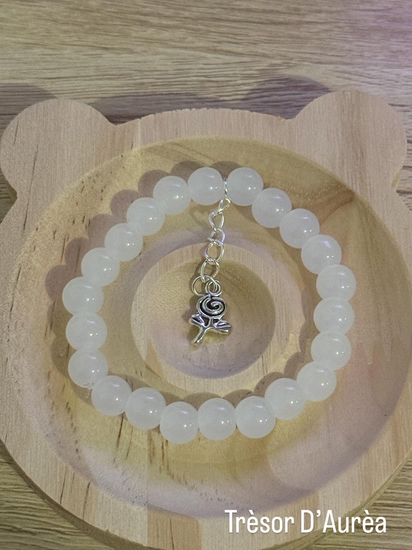 Sublimez votre poignet avec ce bracelet en perles blanches rondes, au charme délicat et intemporel. Son pendentif en forme de rose argentée apporte une touche de romantisme et d’élégance, parfait pour compléter toutes vos tenues du quotidien ou de soirée.