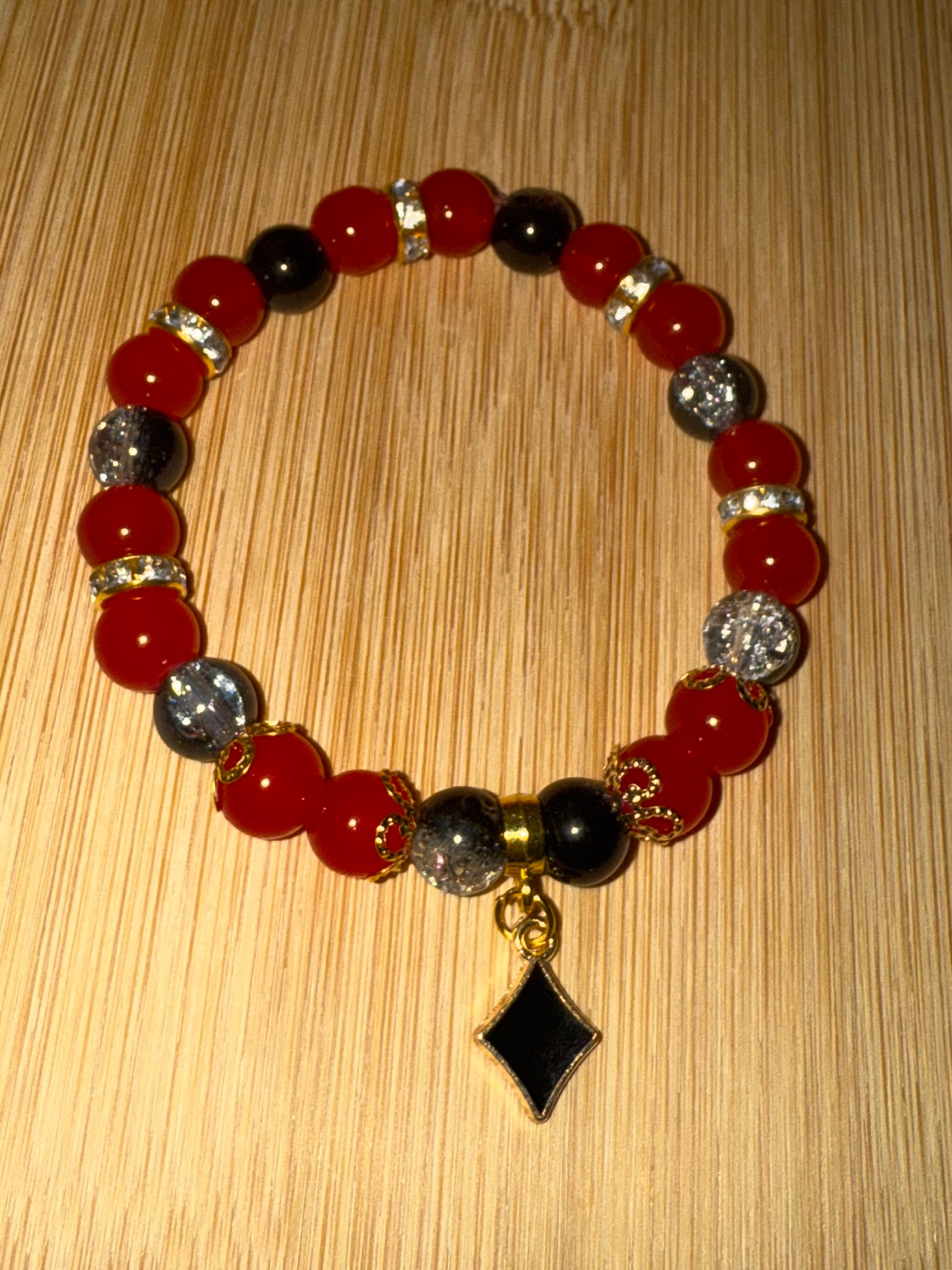 Le bracelet Isandra incarne la passion et le mystère. Ses perles rouges symbolisent l’énergie et la force, tandis que les perles noires apportent intensité et équilibre. Les touches argentées illuminent l’ensemble, sublimé par un pendentif losange noir doré, signe de raffinement et de caractère. Un bijou affirmé, idéal pour celles qui aiment se démarquer.