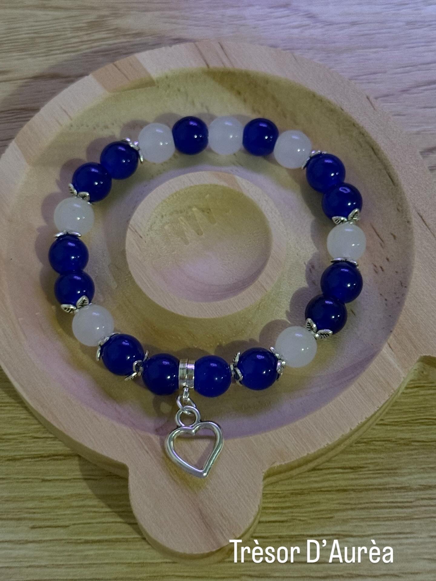 Élégant et raffiné, ce bracelet marie des perles bleu profond et blanches, sublimées par de délicates touches argentées. Son pendentif cœur argenté apporte une note romantique et intemporelle, idéale pour accompagner vos tenues avec charme et élégance.