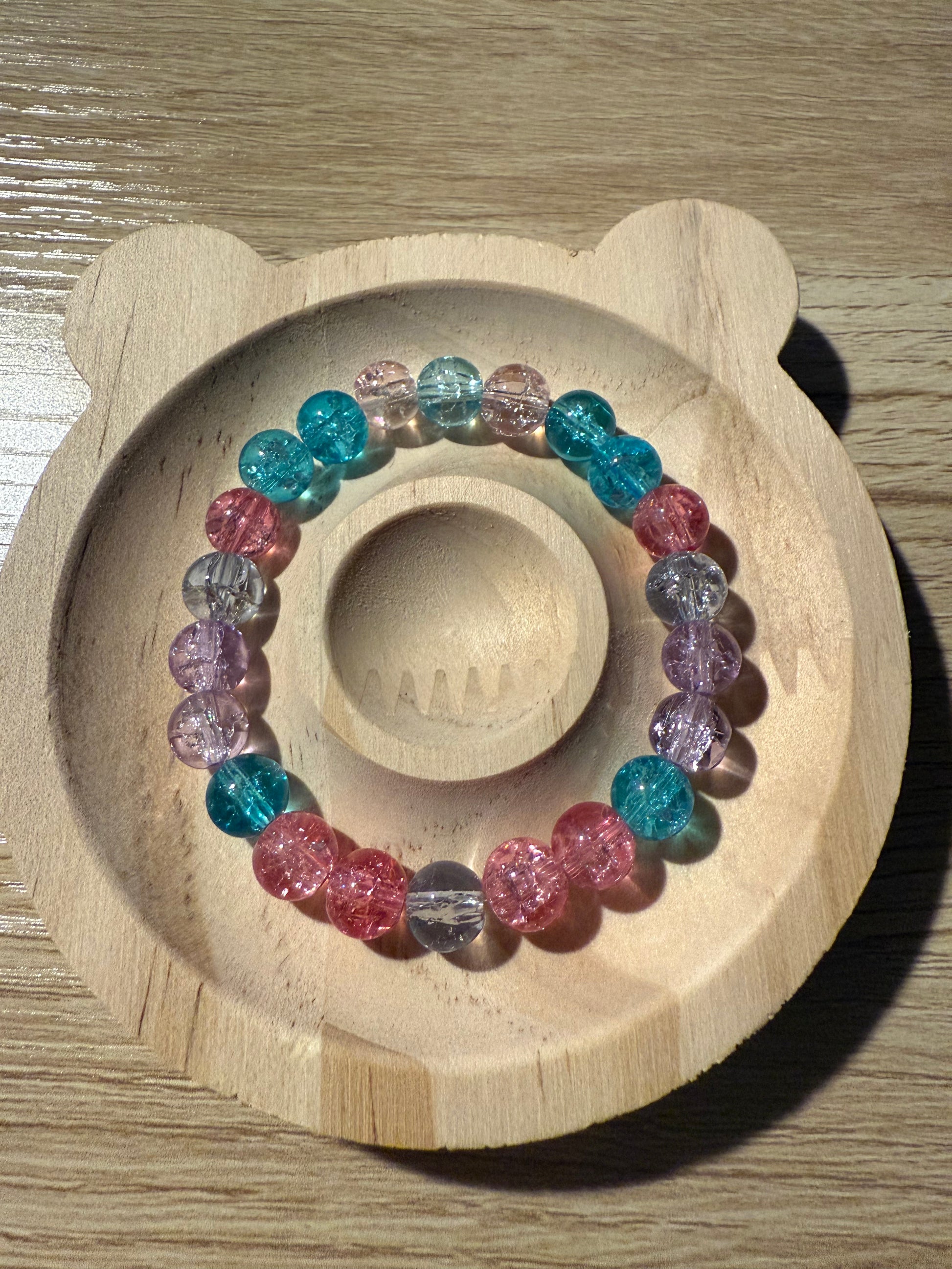 Le bracelet Megane est une explosion de couleurs et de gaieté. Composé de perles roses, bleues, violettes et transparentes, il évoque la douceur des bonbons et la magie des arcs-en-ciel. Léger et éclatant, c’est le bijou parfait pour apporter une touche joyeuse et colorée à vos tenues.