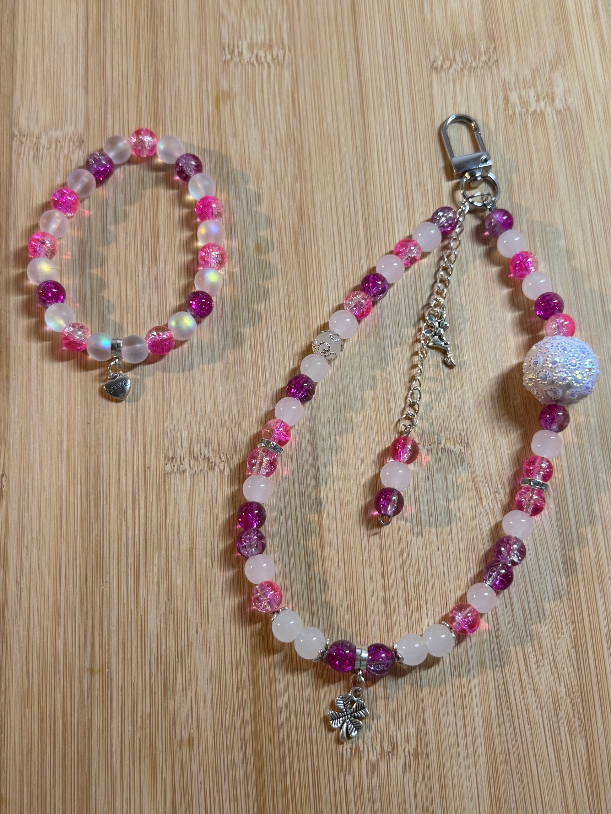 Découvrez l'ensemble Sarah, comprenant un bijou de téléphone élégant et un bracelet assorti. Parfait pour coordonner votre style avec harmonie, cet ensemble saura apporter une touche de raffinement à votre quotidien.